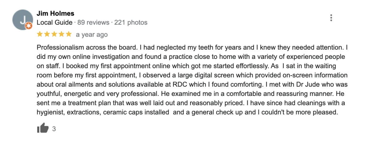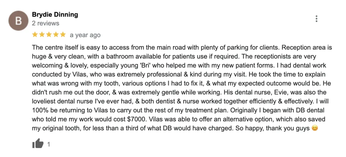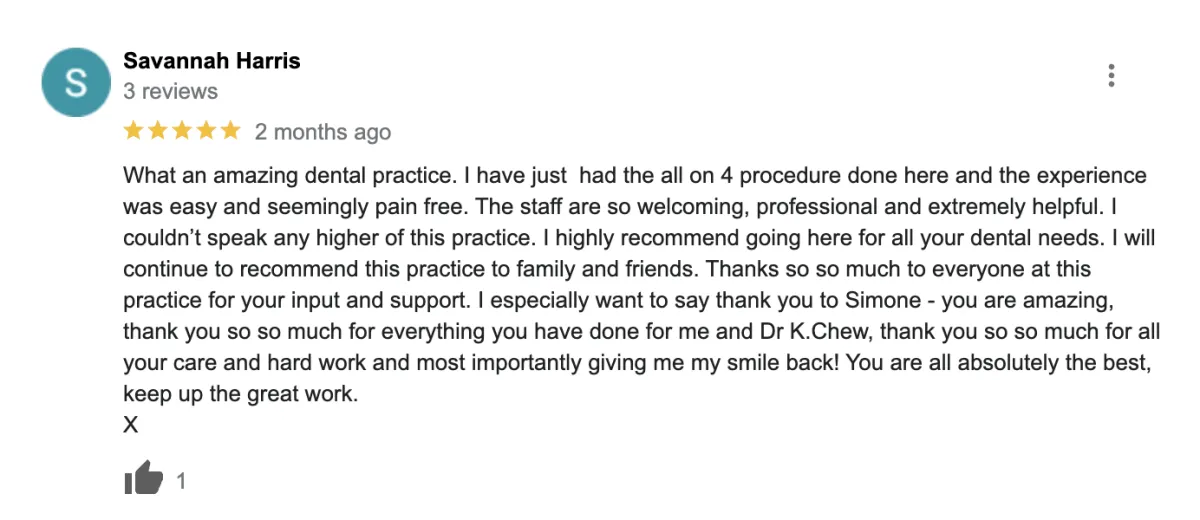 Being such a big practice, with many Dentists skilled in all the various aspects of Dentistry, it is not uncommon to see referrals within the practice to each other, based on their interests & skills. By doing this, it also means we send very few patients out of the practice to Specialists, which we really only do, if the cases presenting are too complicated for the scope of our Dentists, or if it is an urgent / life-threatening emergency.It is a highly collaborative environment, with many regular coaching & meeting sessions, to improve our patient care for our patients.